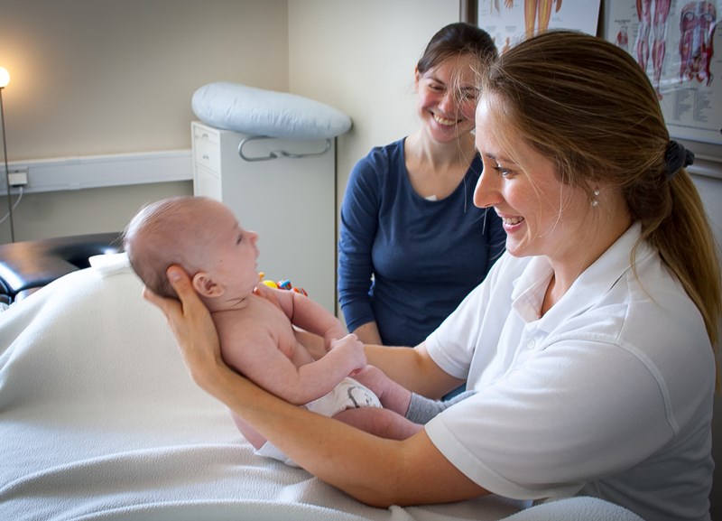 Barneosteopat Amy Jahr ved OK klinikken arbeider med lille baby Orest. Foto: Kristine Å. Skogstad