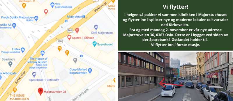 Fra og med mandag 2. november er vår nye adresse Majorstuveien 36, 0367 Oslo.