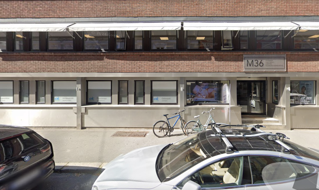 Majorstuveien 36 B, og inngangen er midt på kvartalet mellom Kirkeveien og Jacob Aallsgate.
